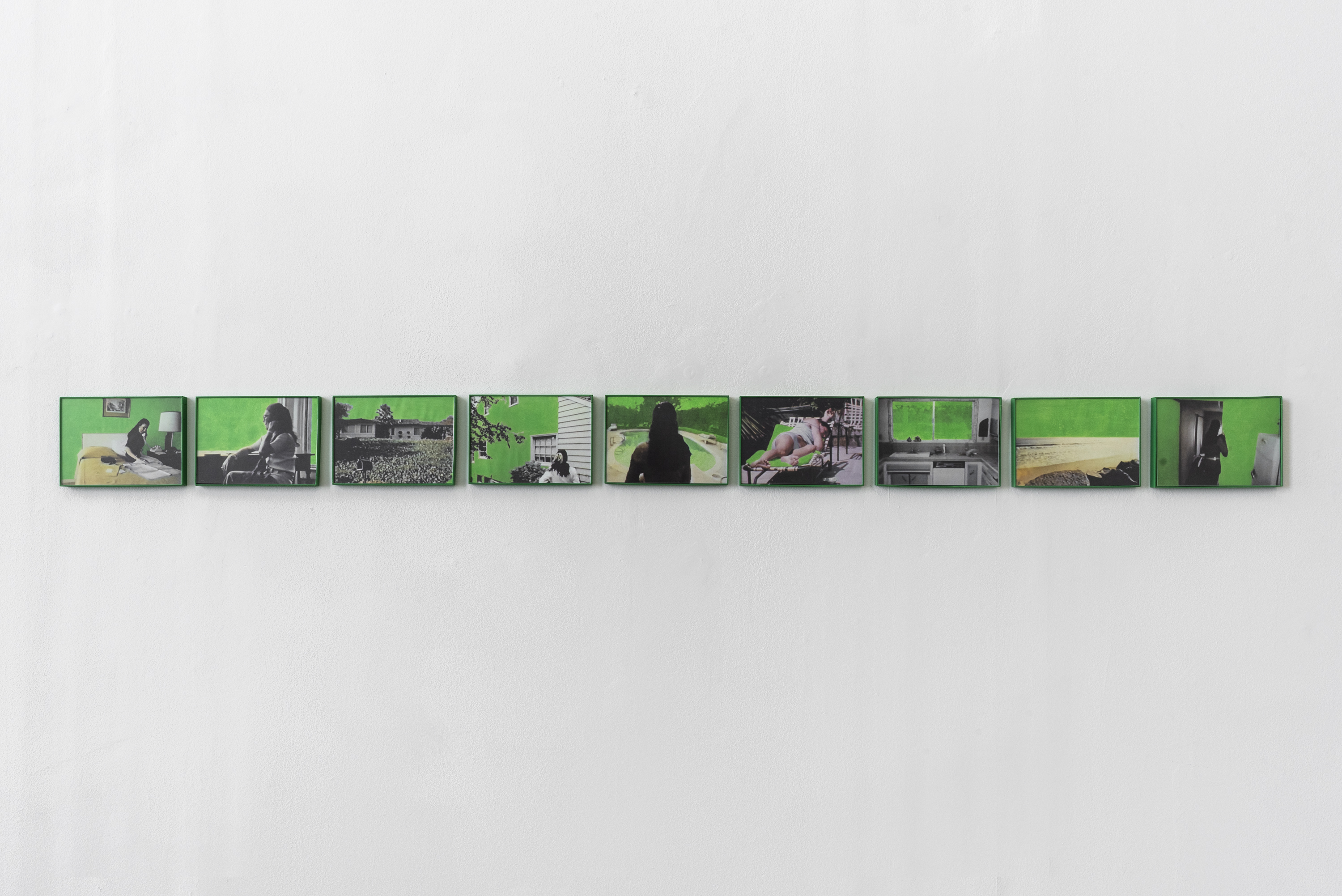 Each frame: 17,9 x 12,9 cm, (Light) green 171 pencel on printed paper,